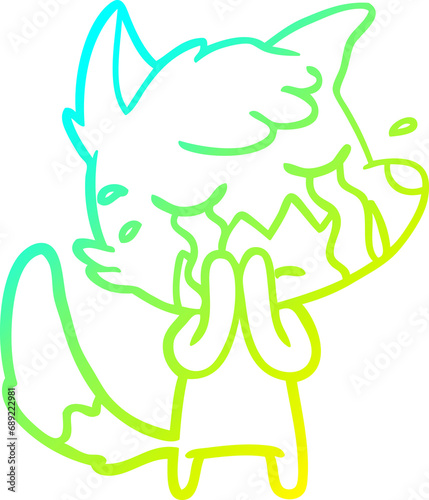 Fototapeta premium cold gradient line drawing of a crying fox cartoon
