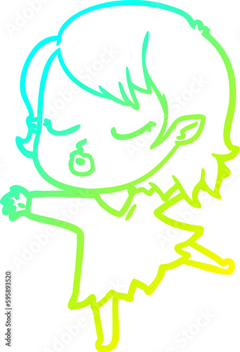 Fototapeta premium cold gradient line drawing of a cute cartoon vampire girl
