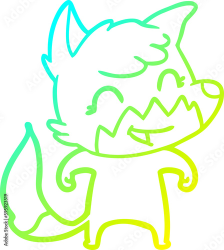 Fototapeta premium cold gradient line drawing of a happy cartoon fox