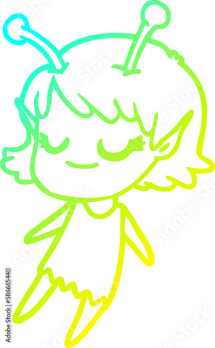 © lineartestpilot, Fototapeta premium cold gradient line drawing smiling alien girl cartoon floating