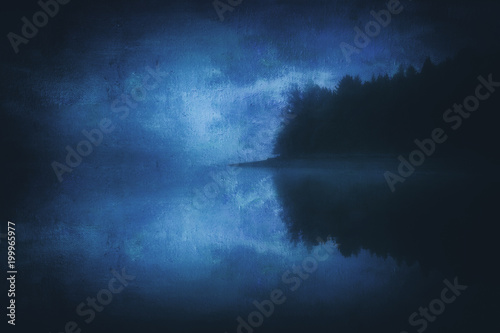 © mimadeo, Fototapeta premium cold noruegan lake with grungy textures