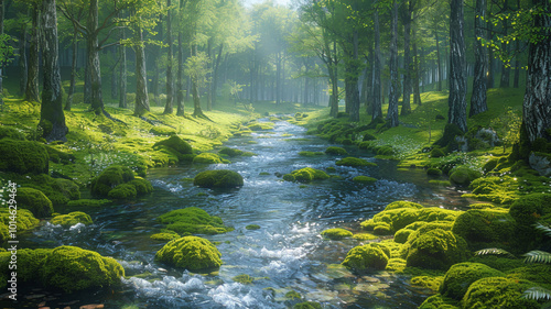 © Anatoli, Fototapeta premium Cold stream in the forest close-up