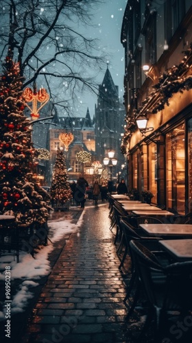 © Rawpixel.com, Fototapeta premium Cold winter night christmas city architecture.