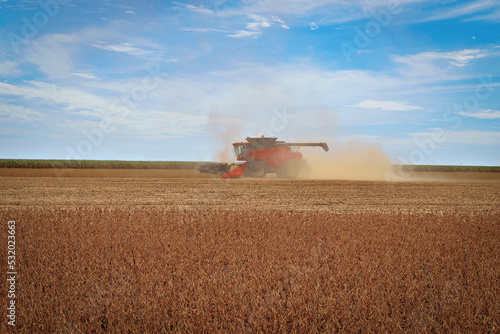 © Jr Studio Foto, Naklejka premium Colheitadeira trabalhando em campo de soja