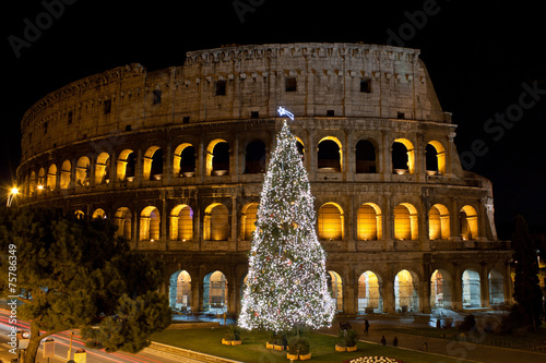 © norbel, Fototapeta premium Coliseum and Christmas Tree in Rome, Italy