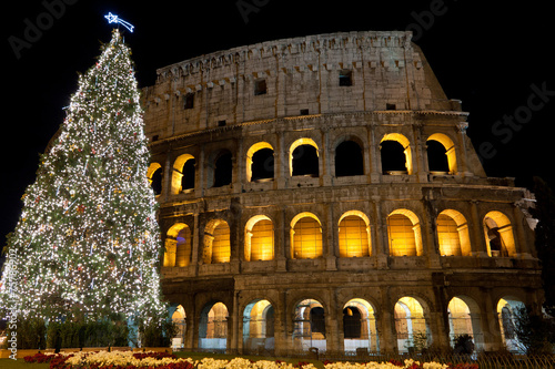 Obraz premium Coliseum and Christmas Tree in Rome, Italy