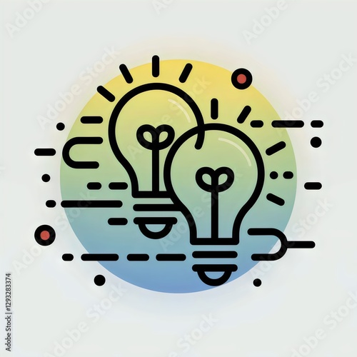 Obraz premium Collaboration icon with overlapping lightbulbs and digital elements – Ideal...