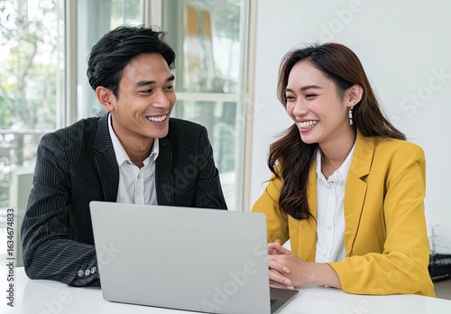 © Ganesha88, Obraz premium Collaborative Meeting of Young Asian Professionals in a Bright Office Environment
