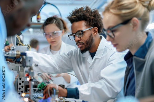 Fototapeta premium Collaborative team of engineers and scientists working on innovative...
