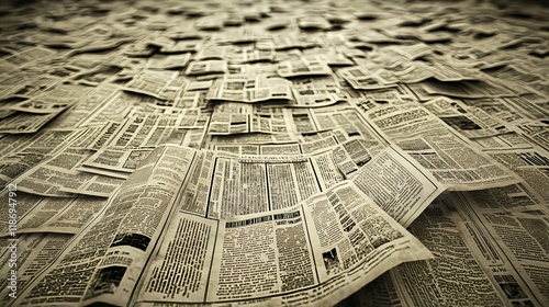 © Neungruedee, Fototapeta premium Collage of Aged Newspaper Clippings on a Vintage Surface