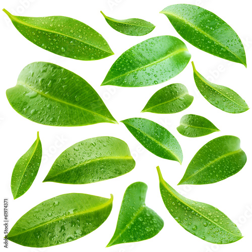 © Africa Studio, Fototapeta premium Collage of beautiful green leaves isolated on white
