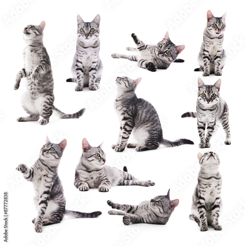 © Africa Studio, Fototapeta premium Collage of beautiful grey cat isolated on white