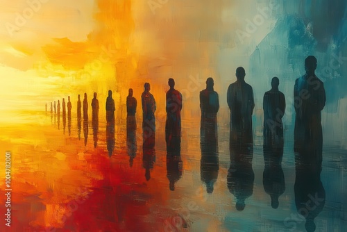 © Vesna, Obraz premium collage of human figures practicing mindfulness and spiritual exercises vibrant hues reflecting inner peace a blend of human silhouettes and ethereal elements symbolize soul healing