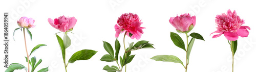 Fototapeta premium Collage of pink peony flower on white background