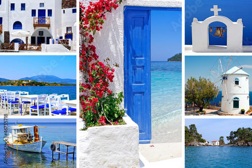 Fototapeta premium Collage of summer photos in Santorini island, Greece