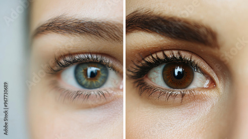 © Rauf, Fototapeta premium Collage showing woman's eye before and after mascara application.