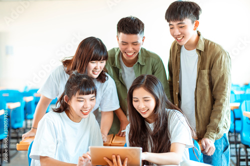 © Tom Wang, Fototapeta premium collage Student discuss with Classmate in Classroom