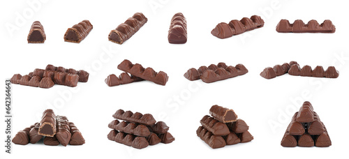 Fototapeta premium Collage with chocolate bars isolated on white