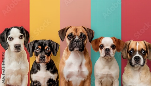 © Jordi, Fototapeta premium Collage with different dogs on color background