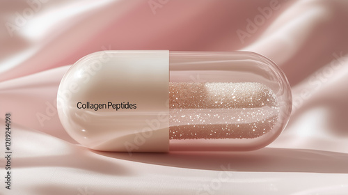 Obraz premium Collagen peptides supplement displayed on soft pink fabric highlighting its...