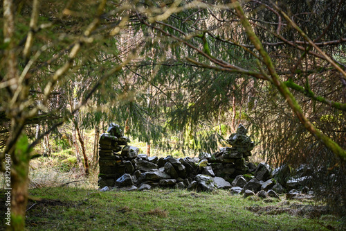 © Mike, Fototapeta premium collapsed stone wall in a forest