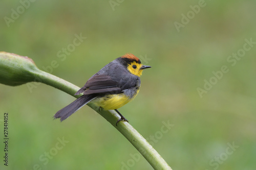 © PetrDolejsek, Fototapeta premium Collared whitestart on stem