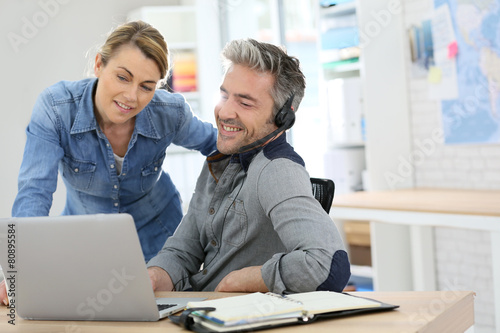 Obraz premium Colleagues in office working on laptop computer