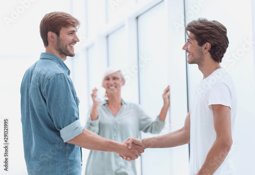 Obraz premium colleagues shaking hands in the office lobby
