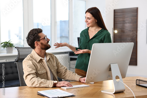 © New Africa, Obraz premium Colleagues working with computer at desk in office