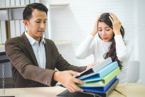 Fototapeta premium colleagues worry and boring about her over work from manager at office