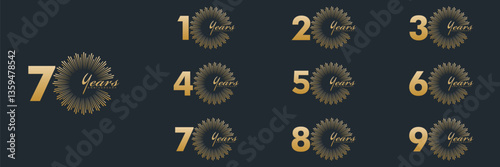 Fototapeta premium collection anniversary 10 to 90 year logo designs. abstract number, vector illustration. gold logo and black background