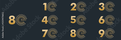 © irfan, Fototapeta premium collection anniversary 10 to 90 year logo designs. abstract number, vector illustration. gold logo and black background