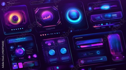 Fototapeta premium Collection futuristic-looking interface elements dark purple background are...