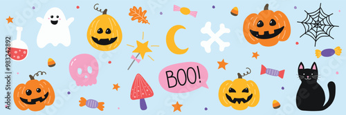© One Pixel Studio, Fototapeta premium Collection of a hand drawn Halloween icons. Vector illustration