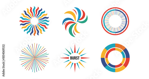 Obraz premium Collection of abstract colorful circular burst and radial graphic elements