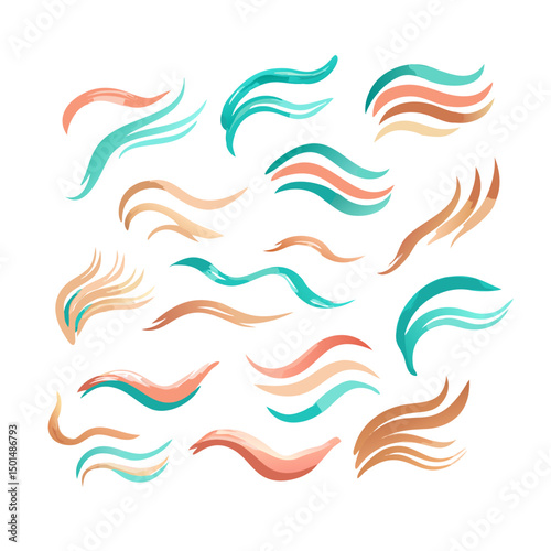 Obraz premium Collection of abstract teal and peach waves isolated on white