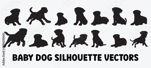 © Imtiaz, Fototapeta premium Collection Of Adorable Baby Dog Silhouette Vectors, Charming Pet Illustrations for Creative Designs