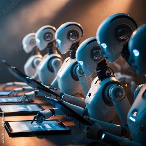 © Patryk, Fototapeta premium Collection of Ai robot using tablet