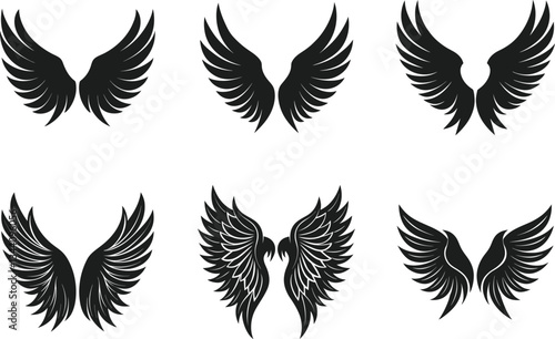 Obraz premium Collection of Angel Wings Silhouettes – Elegant and Versatile Vector Set