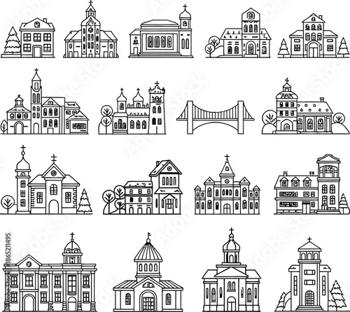 Fototapeta premium Collection of architectural sketches of various buildings and landmarks