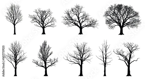 © AL-AMIN, Obraz premium Collection of bare trees in various shapes and sizes on white background silhouette