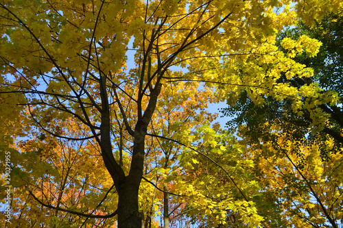 Fototapeta premium Collection of beautiful colorful autumn leaves on trees / green, yellow,...