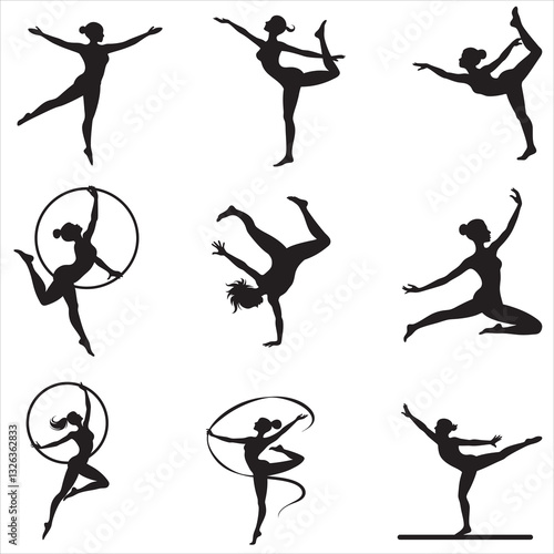 © Shineoxstock, Fototapeta premium Collection of Beautiful Gymnast Girl Silhouette in Exercise Clipart Art