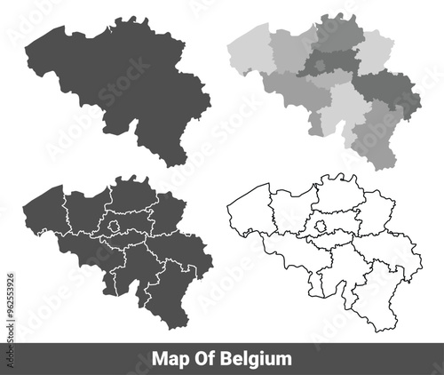 © Jayartiez, Fototapeta premium Collection of Belgium country grey political maps set with border outline vector illustration