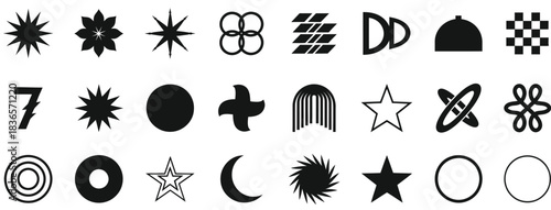 © MstShamima, Fototapeta premium Collection of black abstract geometric and organic shapes on white symbol