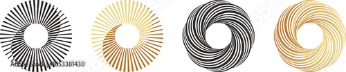 Obraz premium Collection of black and gold colour circle design elements. Halftone dots in...
