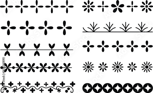 Obraz premium Collection of black and white floral and geometric border design elements