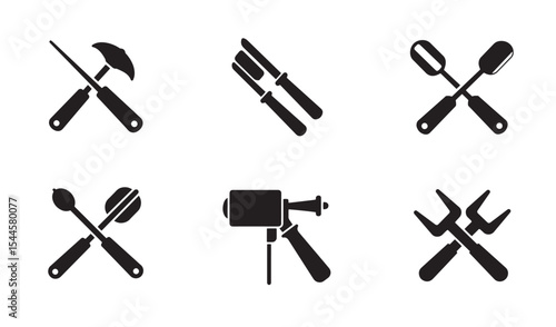 Obraz premium Collection of black and white illustrated tools for workshop repair and...