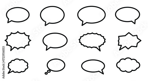 © Afif, Fototapeta premium Collection of Black and White Speech Bubble Outline Illustrations.