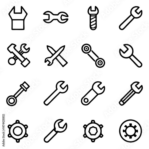 © pixora, Fototapeta premium Collection of black and white wrench and gear icons